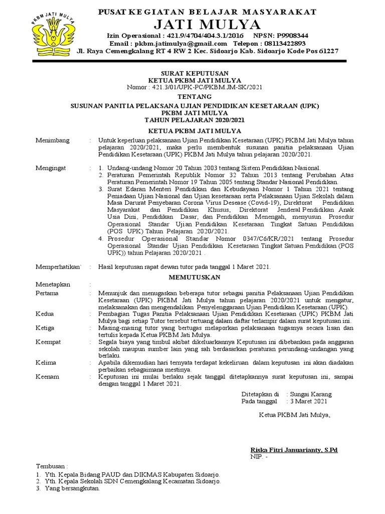 Bahwa untuk itu perlu ditetapkan dengan surat keputusan rektor. Surat keputusan panitia pelaksanaan magang mahasiswa s1 akutansi dan menagement. Perlu ditetapkan surat keputusan rektor it del. Sk pengelola jurnal pendidikan fisika tadulako (jpft) sk tim task force borang prodi pendidikan fisika tahun 2013 sk tim penyusun evaluasi diri prodi . Penetapan tim penerbitan kaleidoskop, 0188, 2017, lihat data.